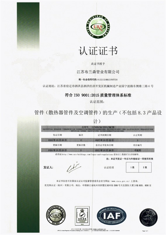About us布蘭森熱傳輸新材有限公司二○○七年創(chuàng)立于廣東省深圳市,二○○九年成立江西布蘭森熱傳輸新材有限公司,2020年成立江蘇布蘭森管業(yè)有限公司,公司坐落在江蘇省泗洪縣青陽工業(yè)園內(nèi),公司自購廠房,投資1.5億元人民幣,廠房占地面積42畝,廠房建筑面積1.5萬多平方米,員工人數(shù)150多人,合作客戶200...